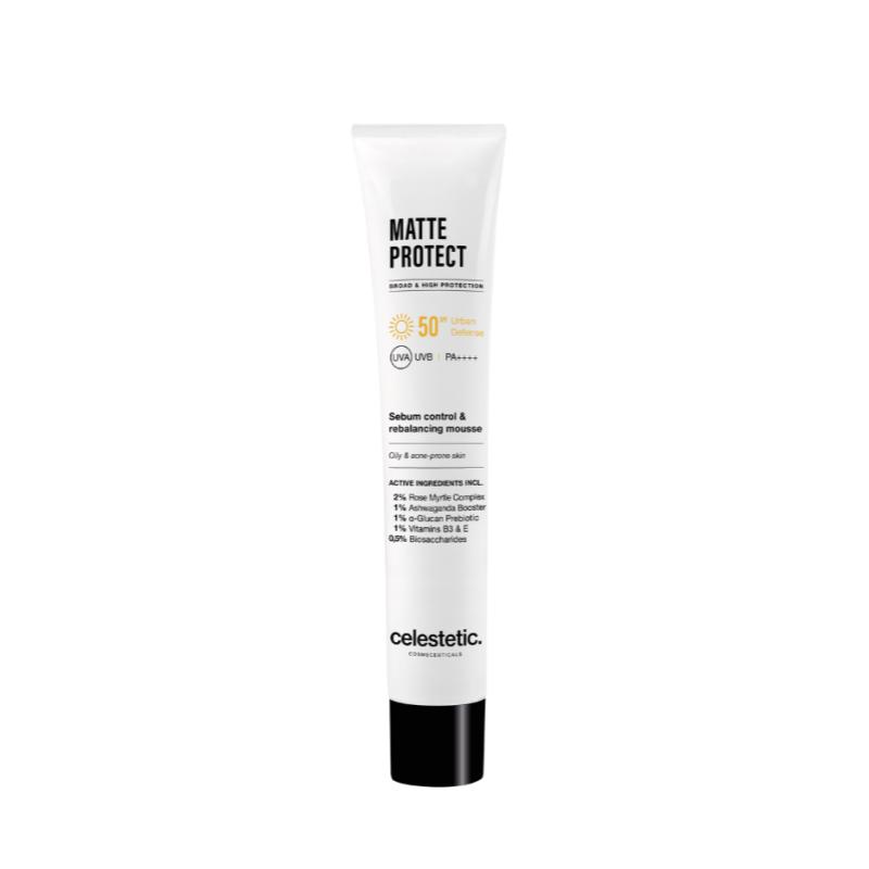 Développée pour répondre aux exigences des peaux exposées au stress environnemental, la Matte Protect SPF50 associe photoprotection avancée et soin cutané complet dans une formule mousse innovante, à la fois ultra-légère et non comédogène.