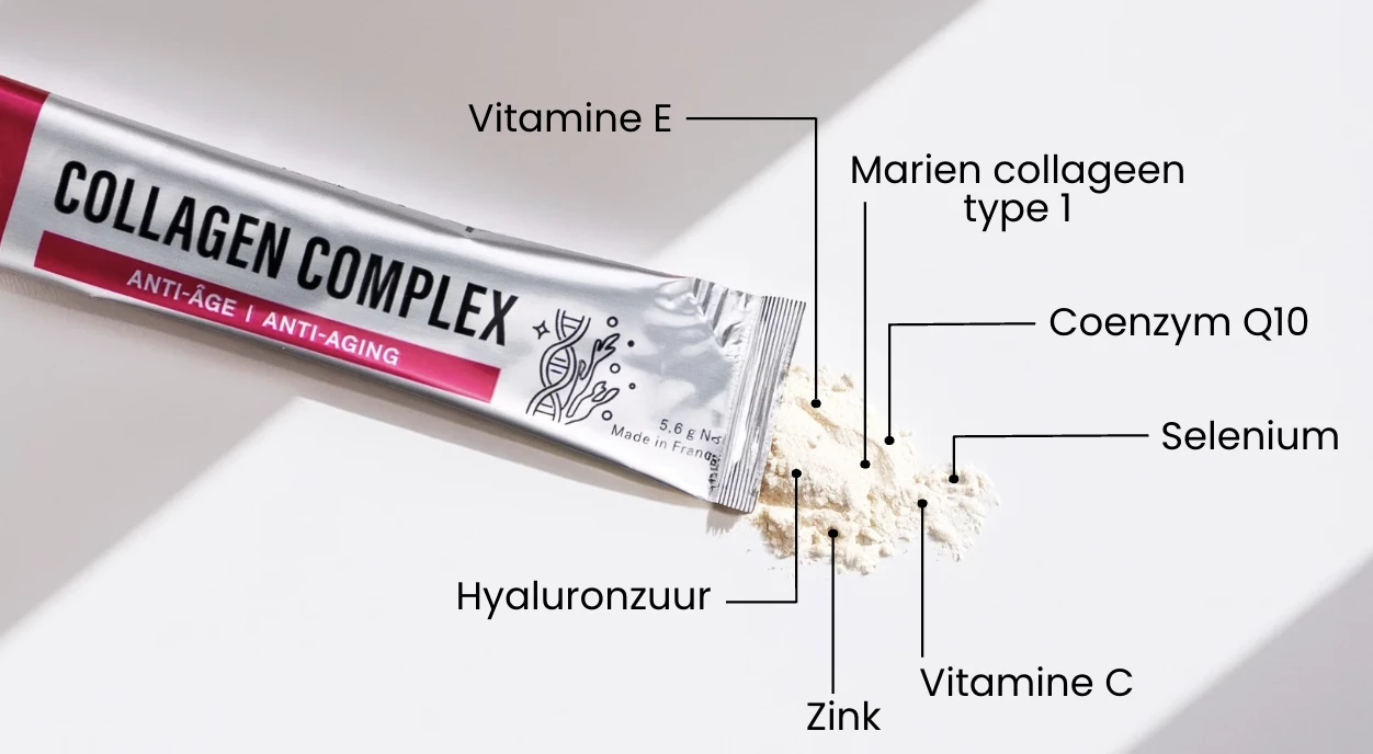 Een studie van Bolke uit 2021 toonde aan dat dagelijkse suppletie met gehydrolyseerd marien collageen gedurende 8 weken de huidelasticiteit met 18% en de hydratatie met 28% verhoogde bij vrouwen tussen 35 en 55 jaar. Deze bioactieve peptiden stimuleren fibroblasten, de cellen die verantwoordelijk zijn voor de collageenproductie in de lederhuid, en helpen rimpels te verminderen en de natuurlijke glans van de huid te herstellen.
