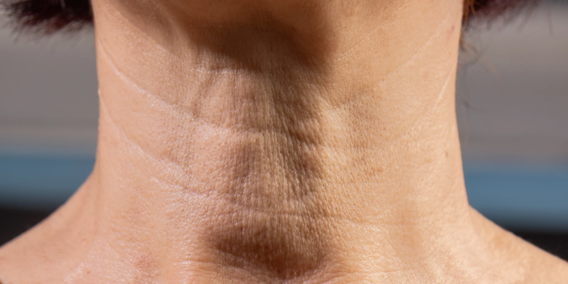 - Blootstelling aan de zon: Vaak vergeten bij het aanbrengen van zonnebrandcrème, wordt de hals sterk blootgesteld aan UV-stralen, wat schade door de zon en huidveroudering versnelt.